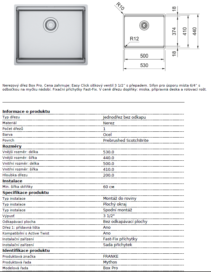 › KUCHYŇSKÉ DŘEZY › Nerezové dřezy › Dřezy bez odkapu › Spodní skříňka od 600 mm › dřez Franke BXX PRO 210/110-50 nerez