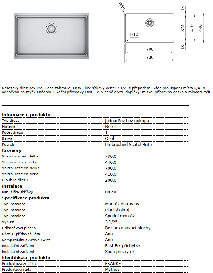 › KUCHYŇSKÉ DŘEZY › Nerezové dřezy › Dřezy bez odkapu › Spodní skříňka od 800 mm › dřez Franke BXX PRO 210/110-70 nerez